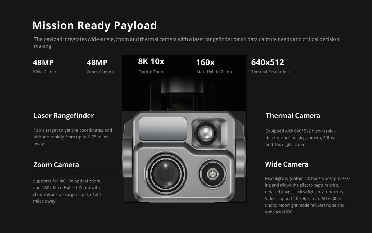 Supports thermal analysis, waypoint missions, and inspection workflows